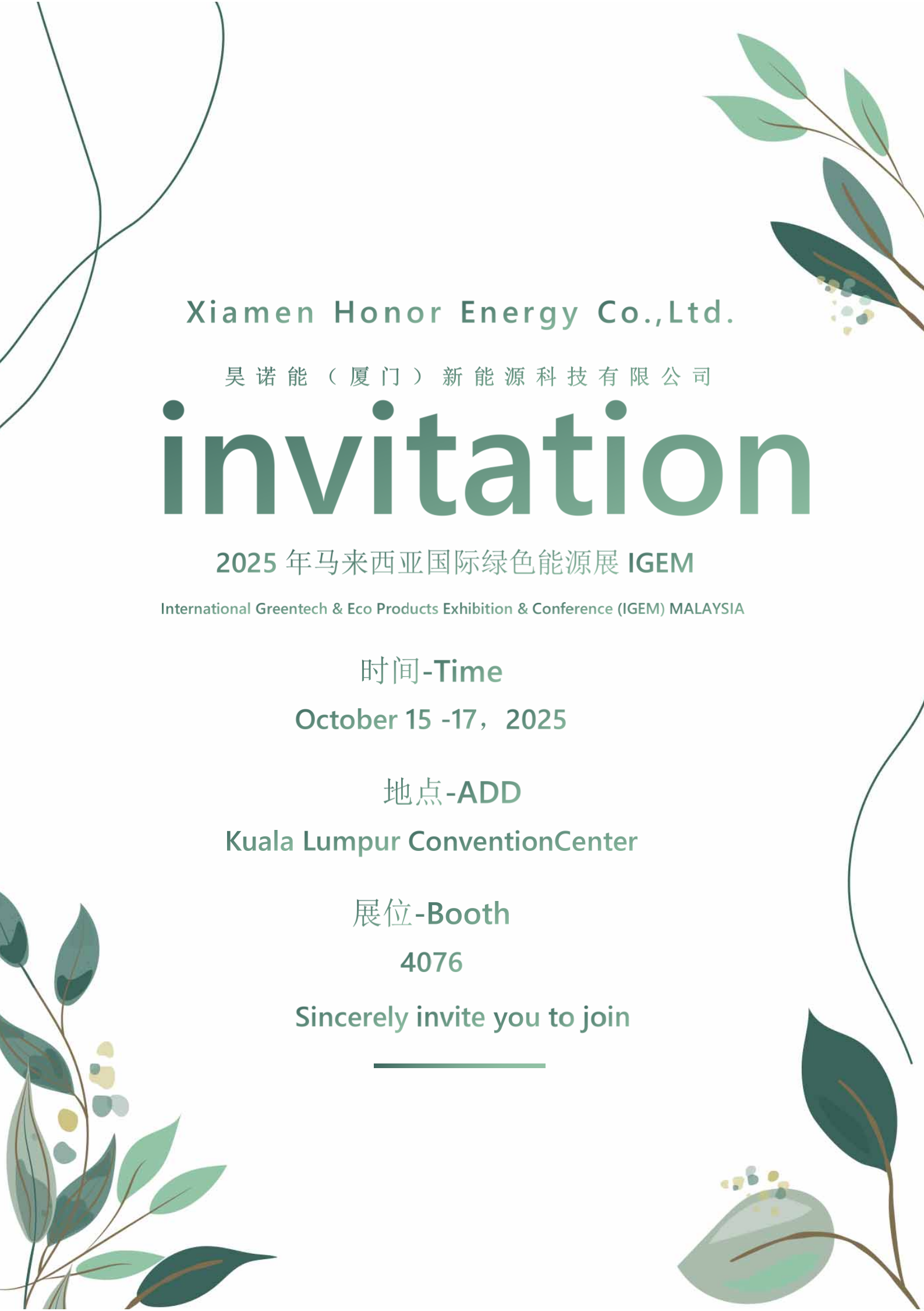 Noisunt multumitisă vă anunțăm invitația noastră oficială pentru Expoziția Internațională de Energie Verde din Malaezia (IGEM) din 2025.