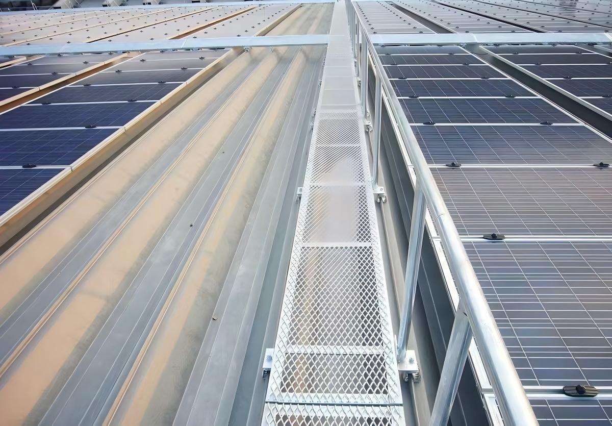 Pasarela solară este o componentă solară extrem de frecvent utilizată, instalată de obicei pentru a facilita o mai bună întreținere a sistemului solar. De asemenea, distribuie încărcăturile prin pasarele dedicate pentru a preveni deteriorarea stratului impermeabil sau scurgerile din acoperiș cauzate de mișcarea frecventă a personalului.